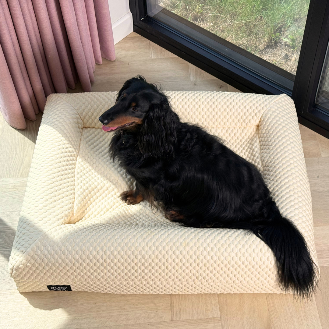 De zachte, lichtgele kleur straalt rust en warmte uit, en past perfect in zowel natuurlijke als moderne interieurs. Een subtiele blikvanger voor in huis, terwijl je hond geniet van verkoelend comfort.