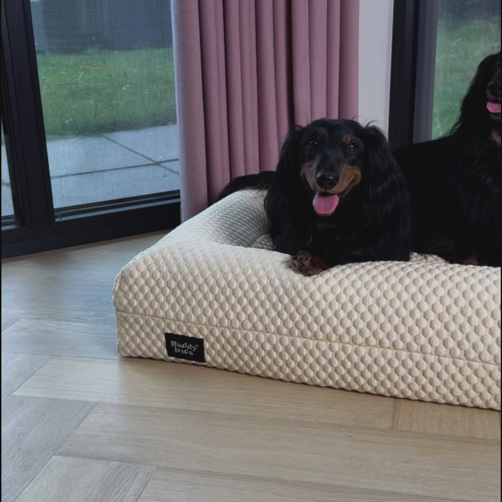 Geef je hond een verkoelende mand deze zomer met de Buddy Beds Cool Hoezen – eenvoudig over het bestaande Buddy Bed te trekken voor directe verkoeling.